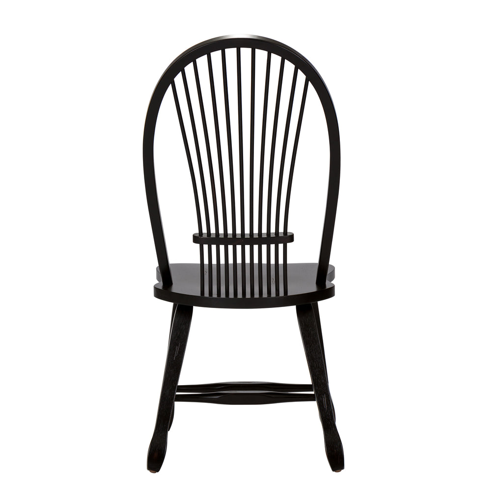 Sit in style with the Treasures sheaf back side chair. Crafted of rubberwood solids, this piece features a rustic black finish, nylon chair glides to protect your flooring, saddle shaped seating for added comfort, and a H-shaped stretcher for added support. This chair is available in an alternative finish. Treasures offers simple shaker styled dining in a subtle finish which evokes the feel of a treasured antique.