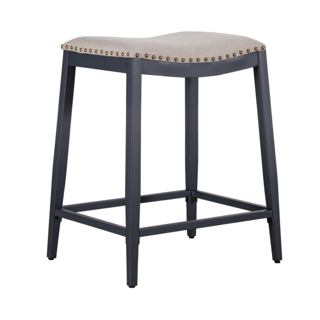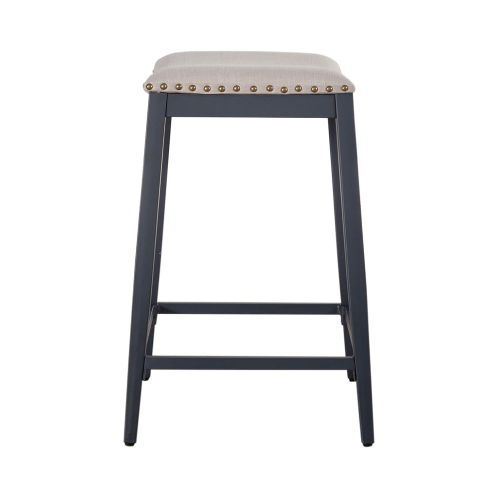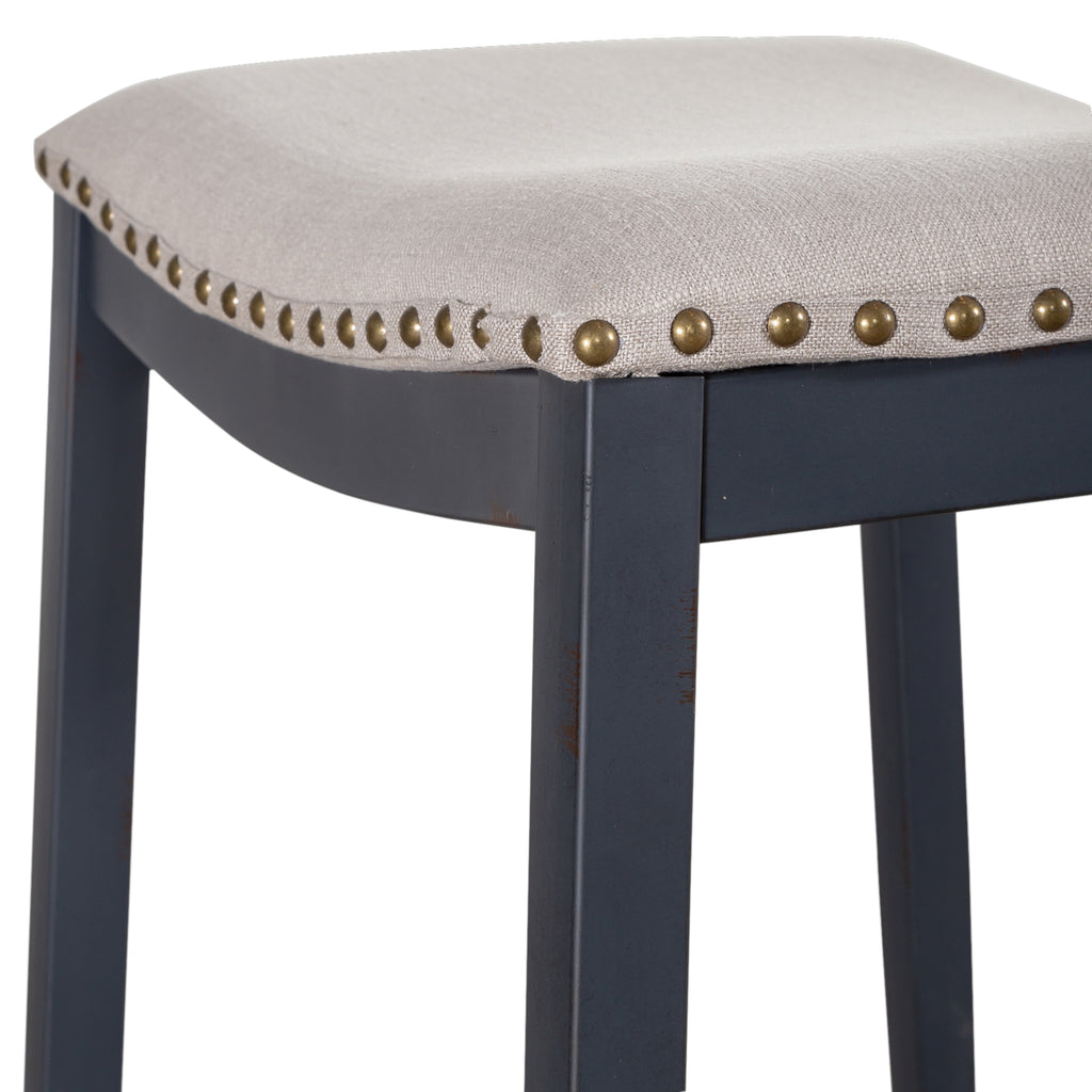 Indulge in classic vintage styling and industrial feel with the Vintage Series backless counter chair. Crafted of metal, featuring nailheads with linen upholstery, this piece features multiple finish options and heavy distressing. Distressed metal finishing accompanied by colors that can mix and match offer a unique designer look.