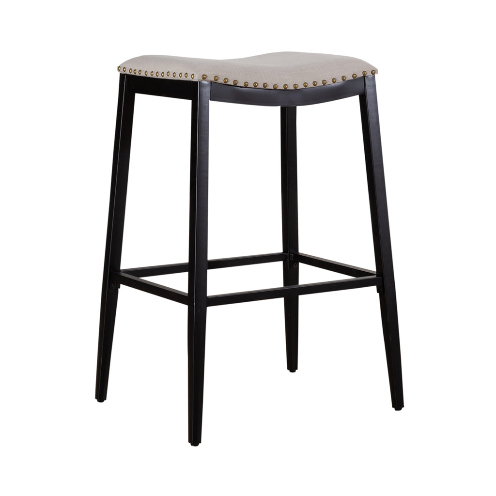 Indulge in classic vintage styling and industrial feel with the Vintage Series backless barstool. Crafted of metal, featuring nailheads with linen upholstery, this piece features multiple finish options and heavy distressing. Distressed metal finishing accompanied by colors that can mix and match offer a unique designer look.
