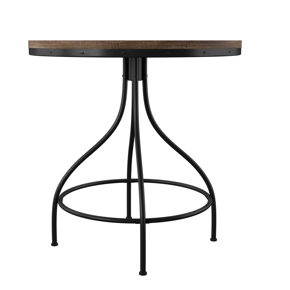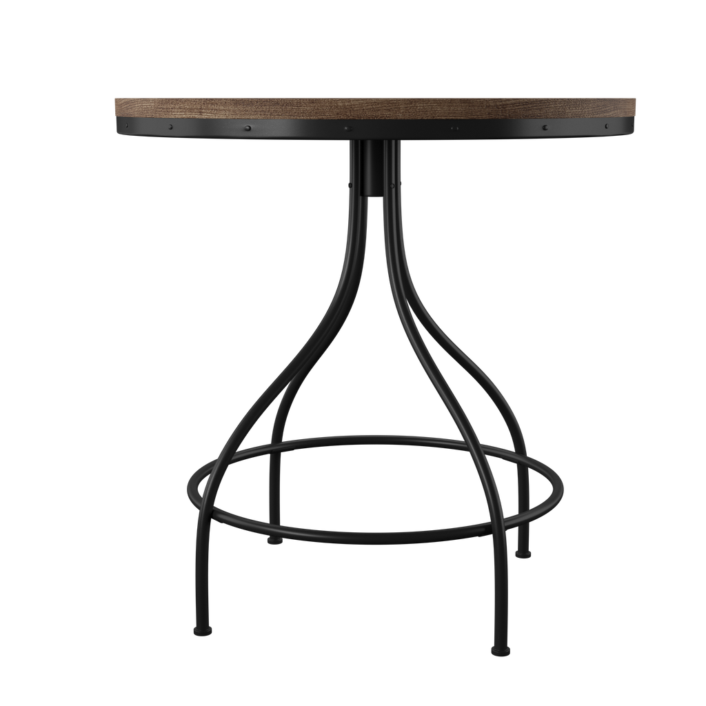 Indulge in classic vintage styling and industrial feel with the Vintage Series pub table. Crafted of pine veneer and metal, this piece features a fixed wood tone top, nail head accents, and a powder coated black metal base to give this piece a two-tone look. Distressed metal finishing offers a unique designer look.