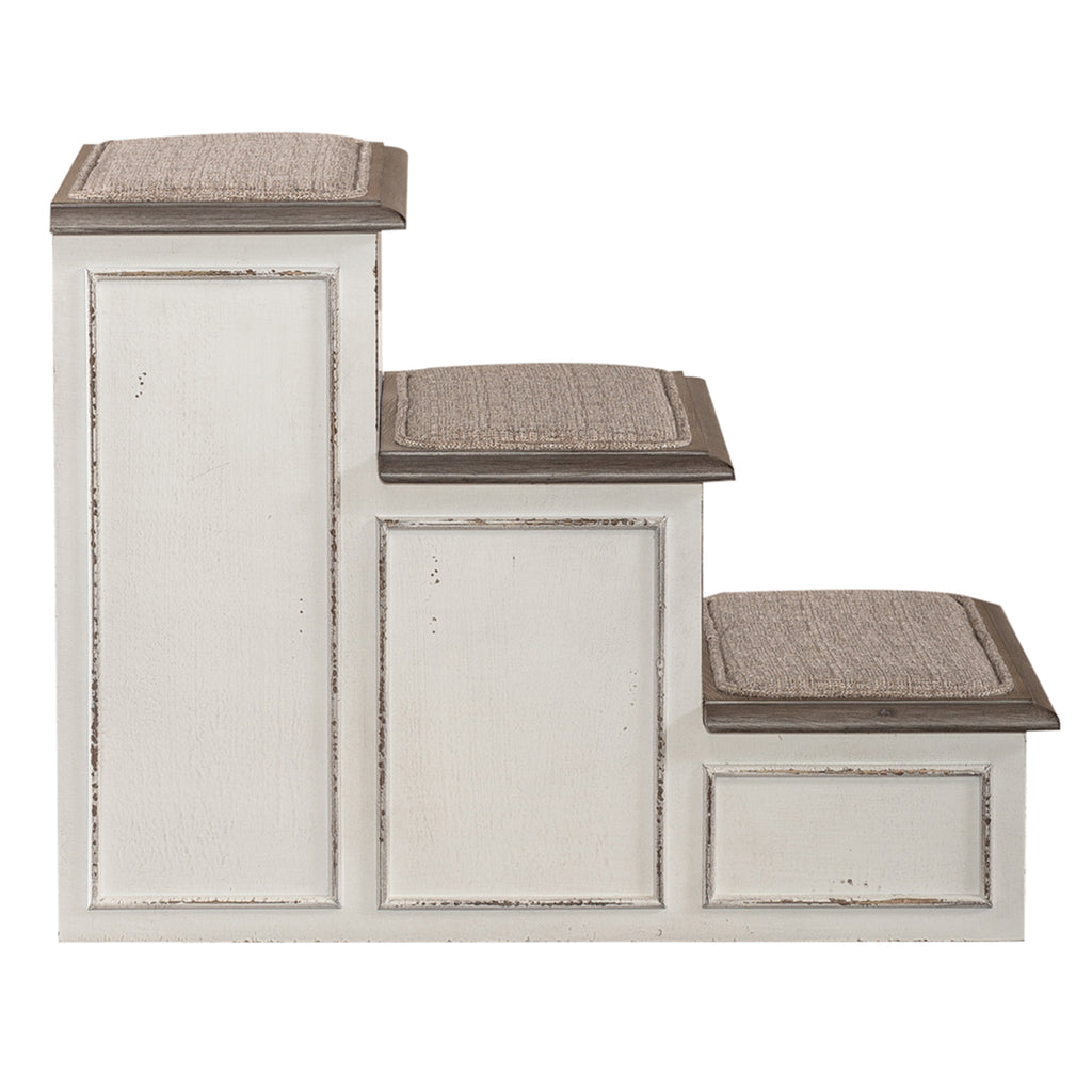 Include your fur babies by adding these unique and stylish pet steps to your bedroom. This item is two toned, blending effortlessly with the rest of your Magnolia Manor bedroom collection. The pet steps feature 3 steps to help your pet onto your bed. The bottom step features a slip proof carpet surface with rubber strips underneath to prevent skidding.