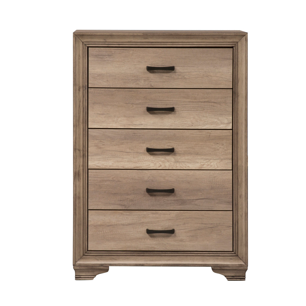 Enhance any room with the Sun Valley chest. This 5-drawer piece is constructed with melamine and a rubberwood solid frame featuring bottom case dust proofing and picture framed cases. Not only does this chest offer cleans lines and creates the perfect look for condos, loft of guest bedrooms, the melamine ensures its longevity in any home.