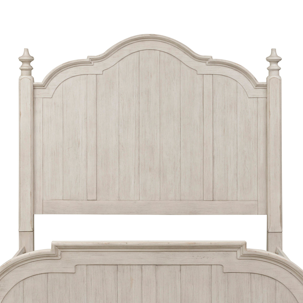 Features shaped post with turned finials and high-low planked design back panel. Headboard can stand alone with Hollywood bed frame. Pair with the footboard and rails for a complete bed.