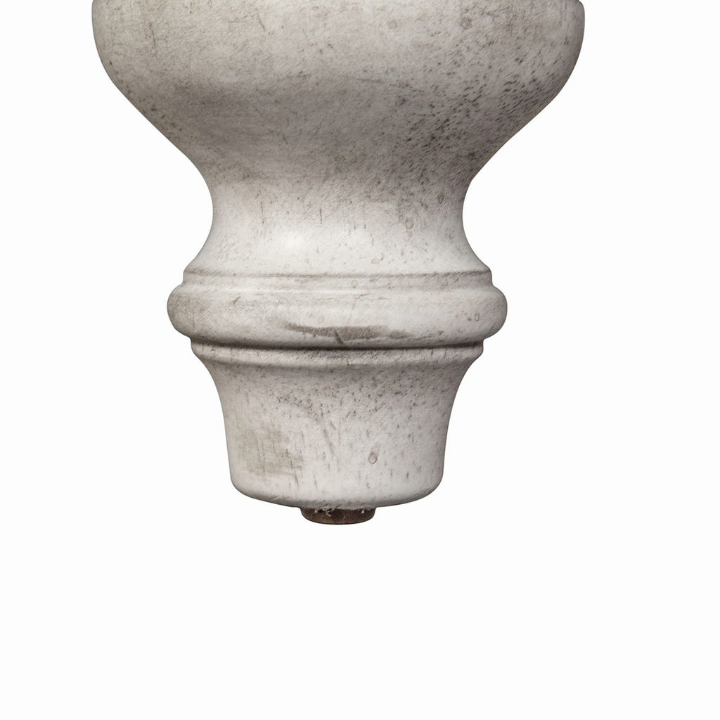 Whitney has the rich character of an English farmhouse appeal. The antique linen and weathered gray finish gives this group an heirloom appeal. The 94 inch trestle table with heavy turned legs on the tables and chairs create an English country charm.