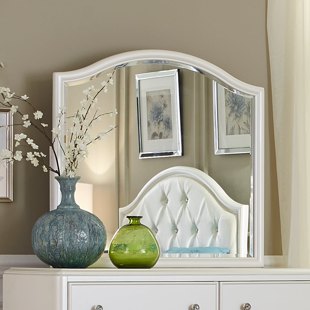 Enhance your room with the Stardust mirror. Crafted by poplar solids and MDF, this piece features an arched shape, bolt on support system, iridescent white finish, CPSC compliance and beveled glass, effortlessly framing the mirror.