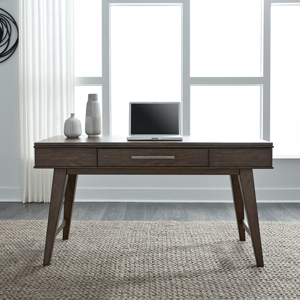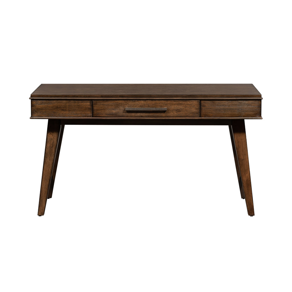 Work from home or in the office with the Ventura Boulevard lift top writing desk. Crafted of rubberwood solids with cathedral walnut veneers, this piece features a bronze spice finish with wire brushed drawer fronts and is accented with antique pewter elongated bar pull hardware. This desk has a manual lift mechanism to allow for a stand or sit function, anchored by a tapered leg design. Ventura Boulevard combines a mid-century modern feel with an urban relaxed style.