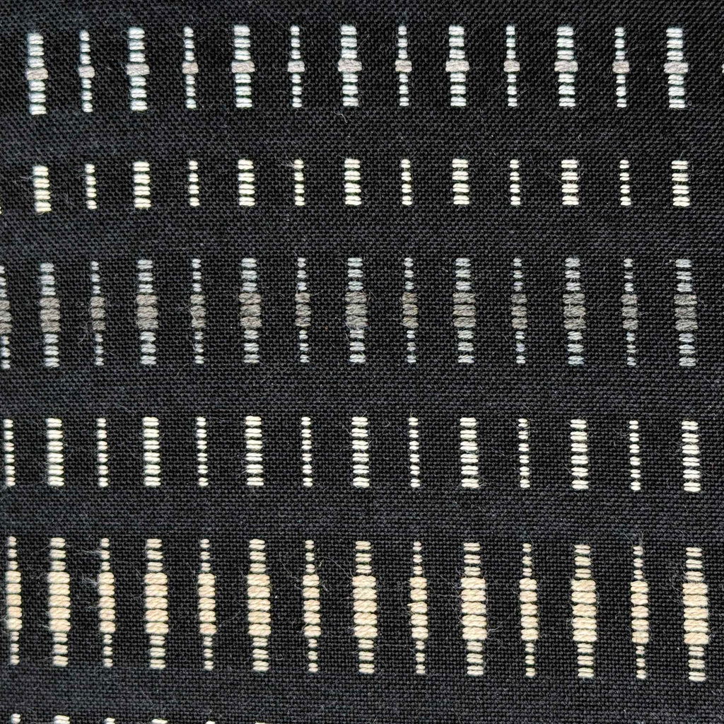 A Modern Geometric Interpretation Of Stripes In Tones Of Gray, Taupe, And Cream Over An Onyx Canvas Ground In Sunbrella Solution Dyed Acrylic. Complete With An Invisible Zipper And Filled With A Plush, Microdenier Polyester Inside A Water-resistant Casing. Made In The USA.