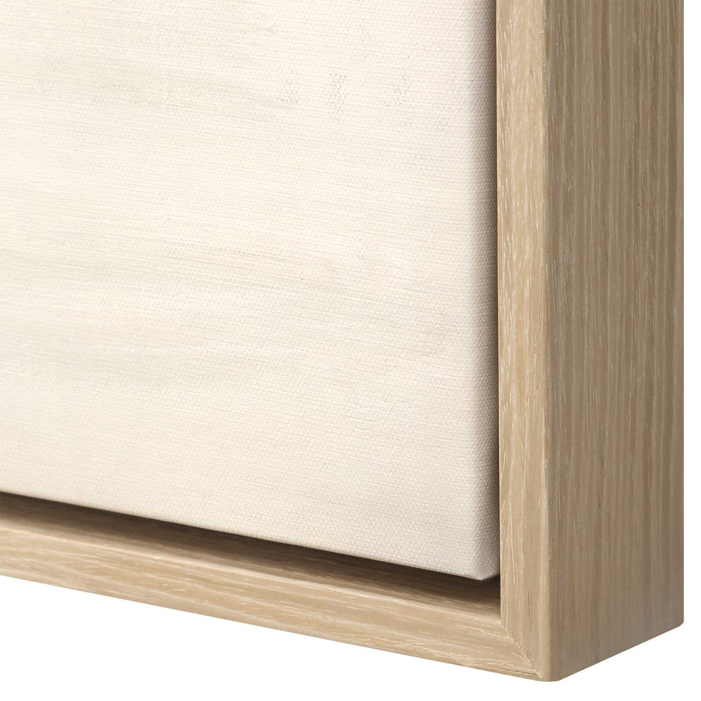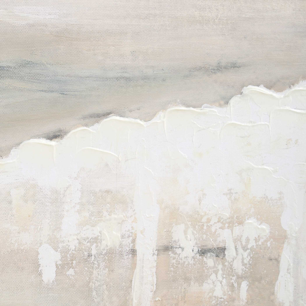 The Gravity Hand Painted Canvas Captures An Abstract Horizon Line In Shades Of Pastel Blue, Taupe, And Ivory With Fluid Layered Strokes, Providing Depth And Texture. This Piece Is Housed In A Pine Wood Frame With A Light Gray Wash. Due To The Handcrafted Nature Of This Work, Each Piece May Have Subtle Differences.