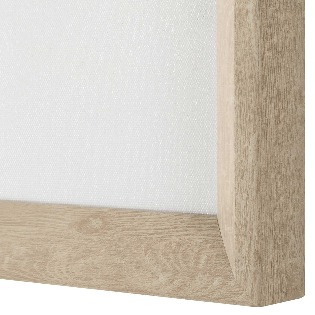 Now & Then Is A Set Of Hand Painted Canvases Featuring An Abstract Composition In Tones Of Gold, Beige, Ivory, And Gray. A Smaller Painted Canvas Is Inset Within A Much Larger Blank Canvas, Creating A Layered Effect. A Natural Pinewood Toned Frame Complements The Artwork's Subdued Palette. Due To The Handcrafted Nature Of This Artwork, Each Piece May Have Subtle Differences.