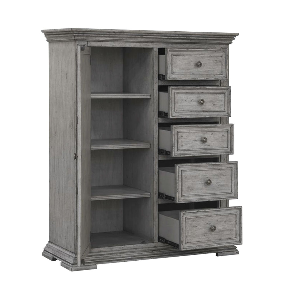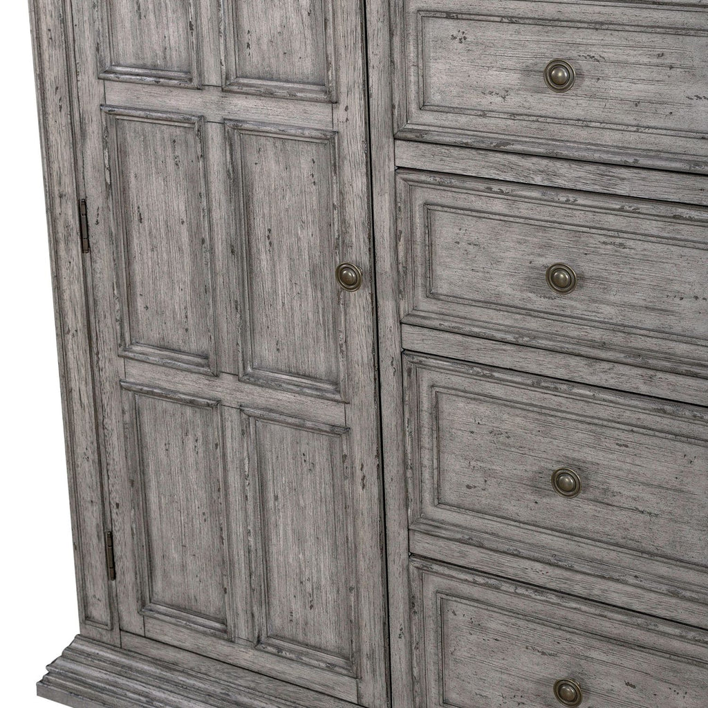 Big Valley is the essence of Traditional Living with Big Scale and Style. Characterized by warm and intricate details such as the Mansion bed which replicates a salvaged antique door.