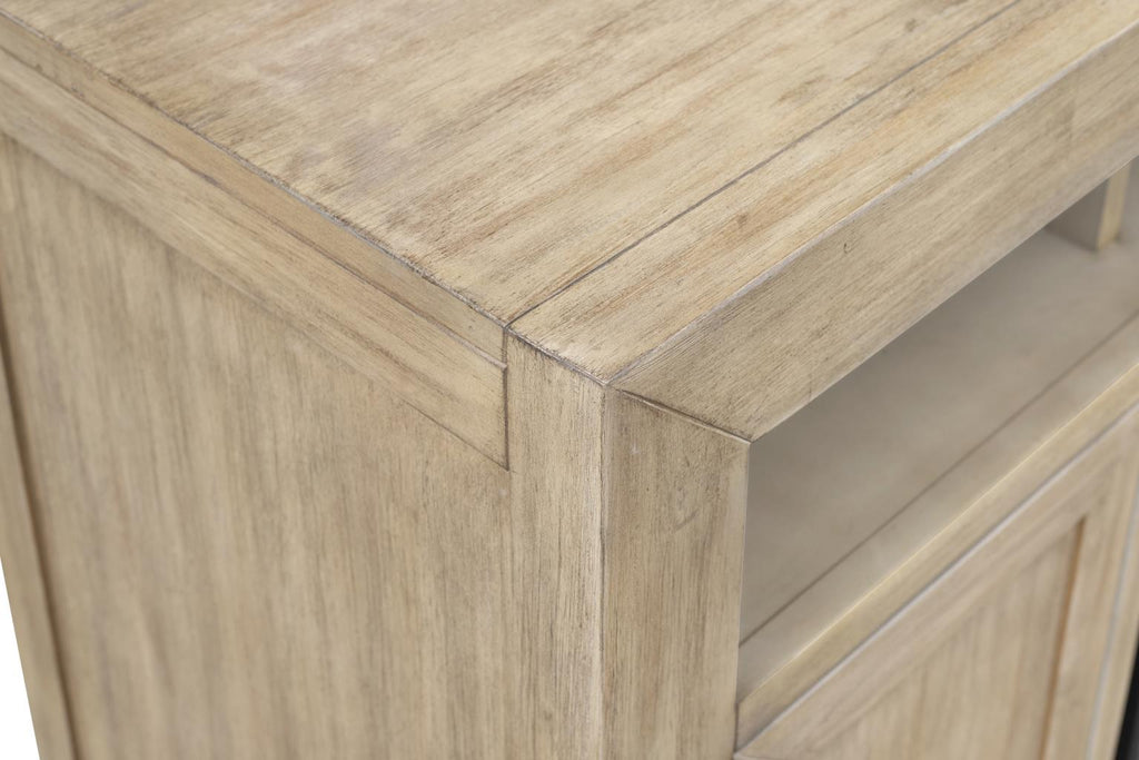 Beautifully hand-crafted, the Lauderdale Fireplace Cabinet brings warmth and functionality to any room in your home! On top are three open storage shelves for your media components and two cabinets on either side of the fireplace offer more roomy storage space. The fireplace is electric with easy to use remote control for flame and heat control as well as a timer and auto shut off for safety.