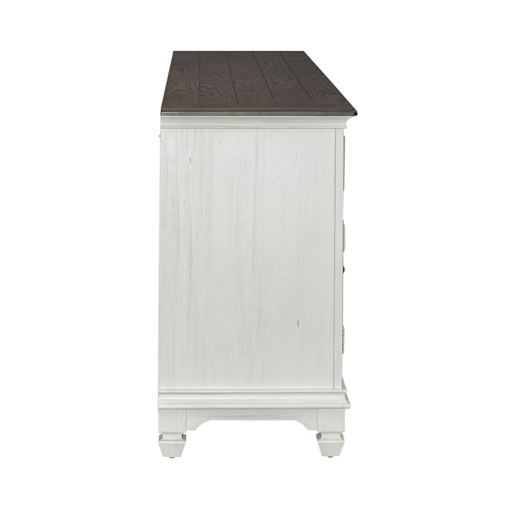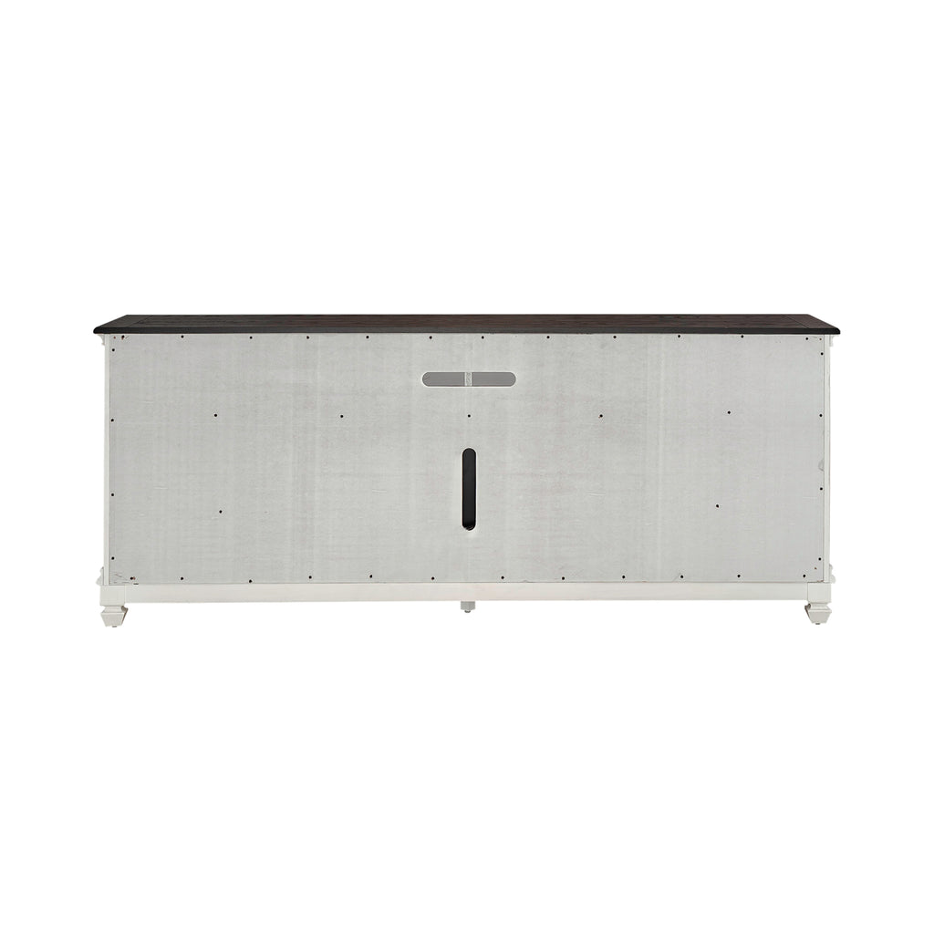 Crafted with excellence using poplar, pine, and rubberwood solids with cathedral white oak and pine veneers, this piece features a Wire Brushed White and Charcoal finish. There are two full extension drawers and two doors. The doors and drawer fronts are wood framed with bead molding and are accented with Antique Pewter knob hardware. Behind each door is one adjustable shelf. The open center compartment with a half center divider can be utilized for your electronics with a wire management cut-out located at the back. Pair with the Dimplex Firebox to complete the set.