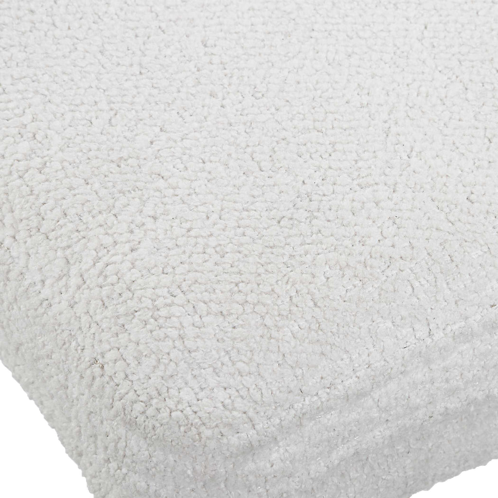 A Gently Padded And Sloped Seat Features A Plush Attached Cushion Atop The Hand Forged Chiseled Iron Base Finished In Aged Gold. Upholstered In A Textured White Boucle With A Toxin-free, Eco Friendly Treatment To Help Resist Water Based Stains.