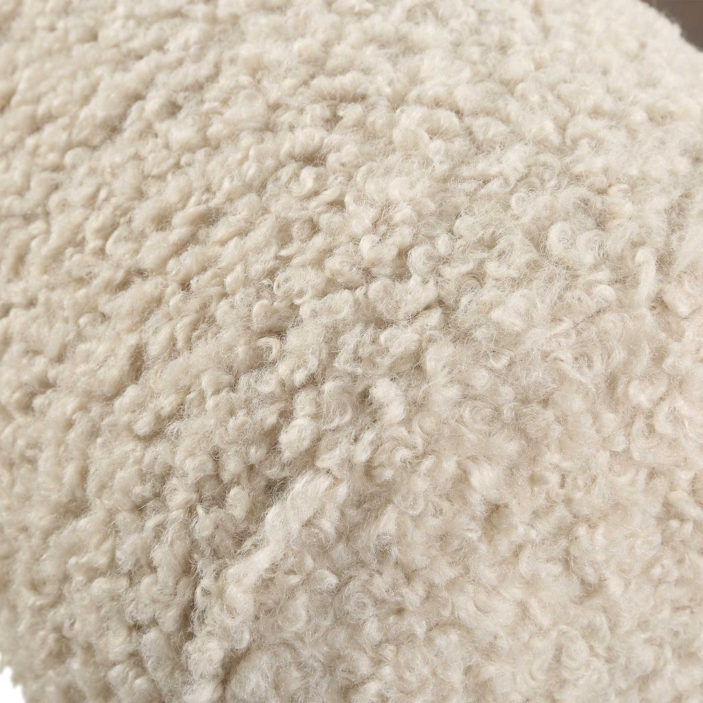 The Lennox Accent Chair Features A Solid Oak Frame With A T Back Design Finished In Dark Walnut. The Floating Barrel Back And Cushion Are Upholstered In A Linen Toned Faux Shearling.