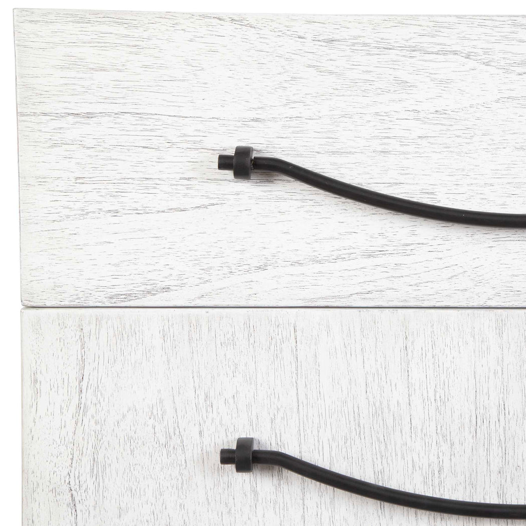 The Vivi Three Drawer Chest Features A White Finish With Black Iron Accents. Displaying Alternating Mindi Veneer Directions Giving It A Playful Element, While The Wide Black Hardware And Matching Legs Add To Its Contemporary Look. Has Soft Closing Drawer Glides.