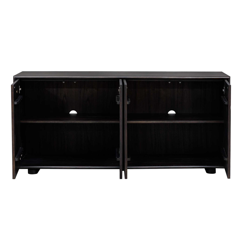 This Four-door Cabinet Is Expertly Crafted From Mindi Wood And Finished In A Rich Multi-toned Ebony Color. The Solid Wood Doors Are Carved With A Chiseled Texture, Adding Depth And Creating A Striking Visual Contrast That Enhances The Overall Design And Depth Of The Cabinet.