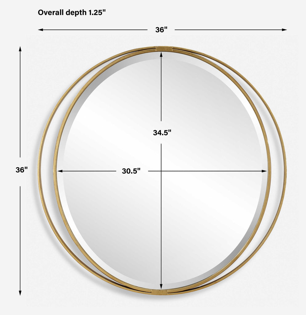 Modern In Style, The Rhodes Mirror Features A Round Outer Iron Frame Surrounding An Inner Oval, Finished In A Antiqued Metallic Gold Leaf, Adding Sophistication To Any Room.
