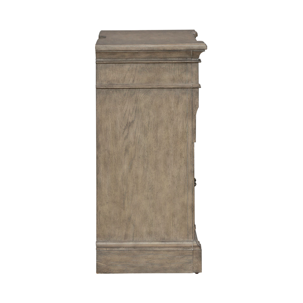 Turn your house into a home with the Town and Country bedside chest with charging station. Crafted with excellence using rubberwood solids and split heart oak veneers, this bedside chest features a Dusty Taupe finish. Decorative fretwork accents and fluted corbels flow into block feet to create a beautiful bedside chest. Don’t let the visible two drawers fool you. The top fretwork accents display a hidden drawer that is lined with premium felt, enabling you to safely store your valuables. The bottom drawer is lined with cedar. All drawers are full extension and feature wood framed drawer fronts that are accented with Burnished Brass bar pull hardware. With three total drawers, this bedside chest offers nice extra storage. Utilize the convenience of the built-in charging station, complete with two electrical outlets and two USB ports. The Town and Country bedside chest with charging station is the essence of a timeless design. The traditional feel combined with the warm antique finishes create an effortless elegance.