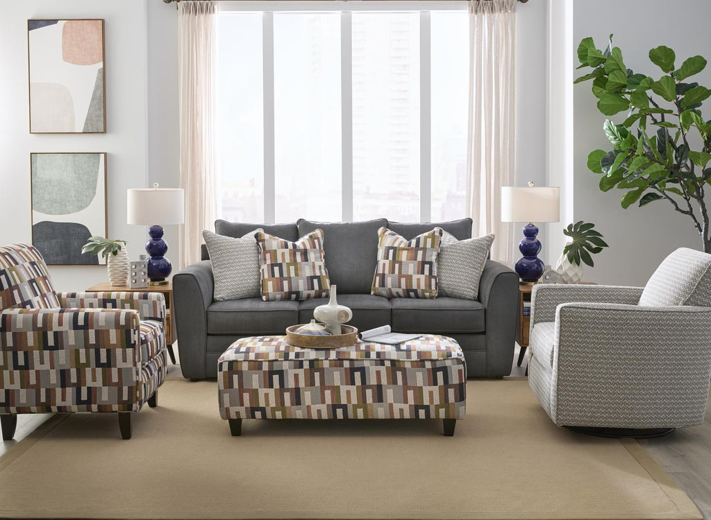 • High-resiliency foam cushions wrapped in thick poly fiber