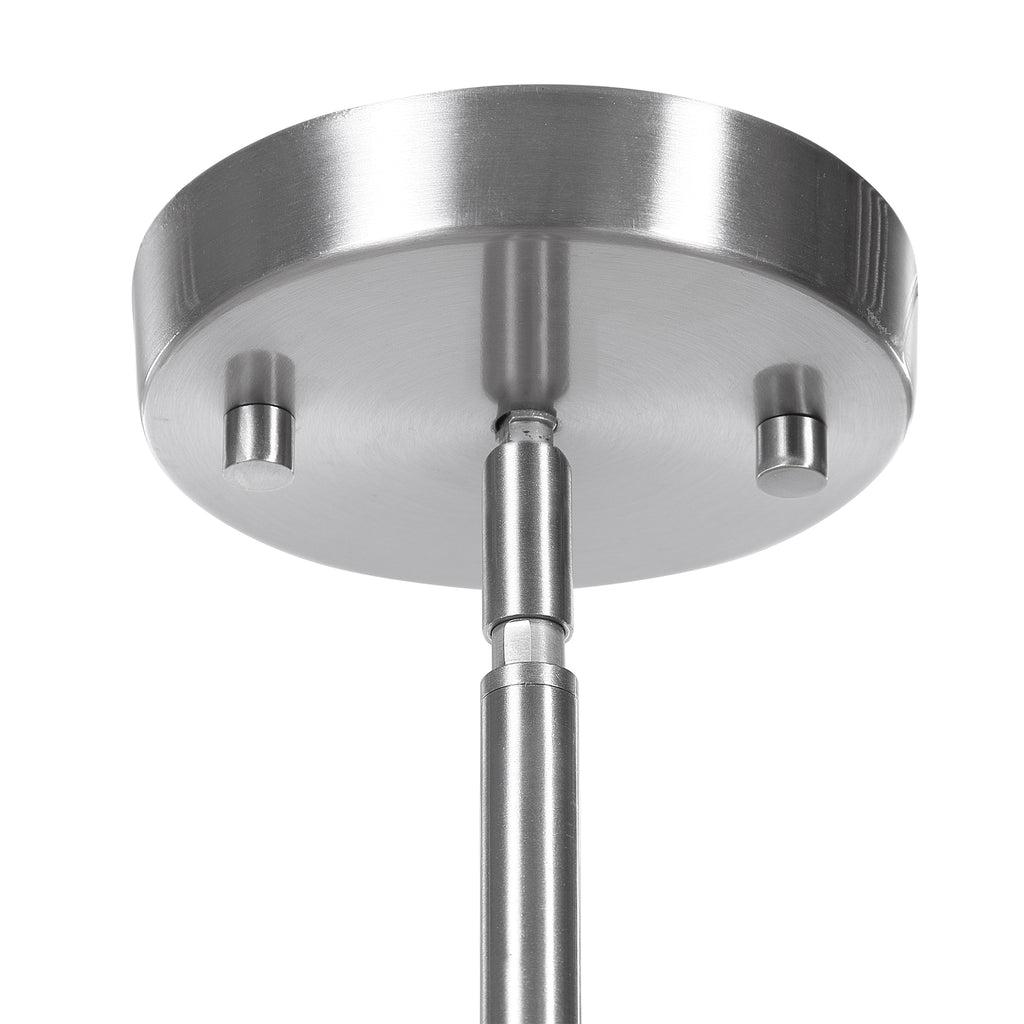 The Feeling Of Windswept Sky And Clouds Are Brought To Life In This 1 Lt. Pendant With A Focus To The Swirling White And Blue Glass Shade. Each Glass Will Vary In Color And Design Finished In Brushed Nickel And Accented With A Subtle Crystal Disk. 1-60 Watt Max, Edison Socket. Bulbs Not Included. Supplied With 15' Wire, 3-12" Stems And 1-6" Stem For Adjustable Installation.