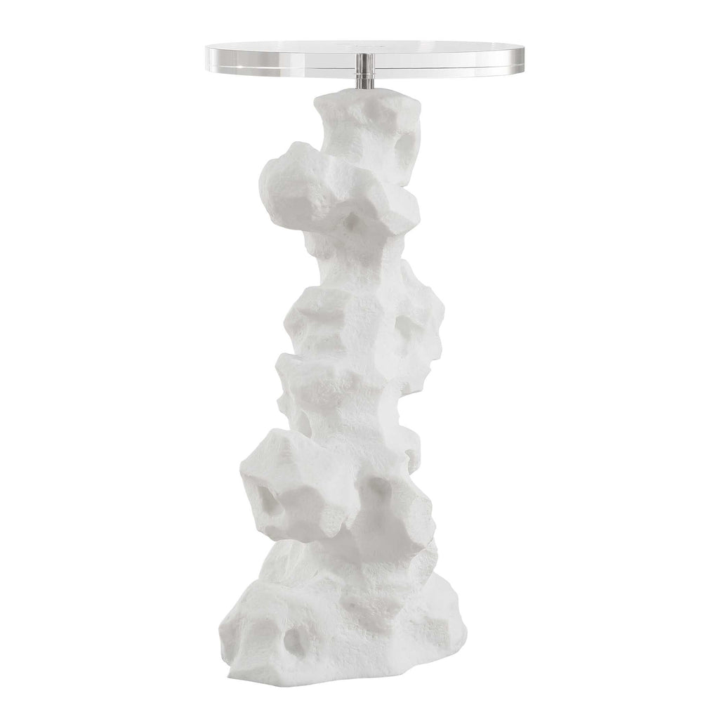 Crafted From Man-made White Stone That Accurately Replicate The Look Of Thassos Marble, The Remnant Accent Table Doubles As A Table And A Modern Work Of Art. The Top Is Made Of Thick Crystal.