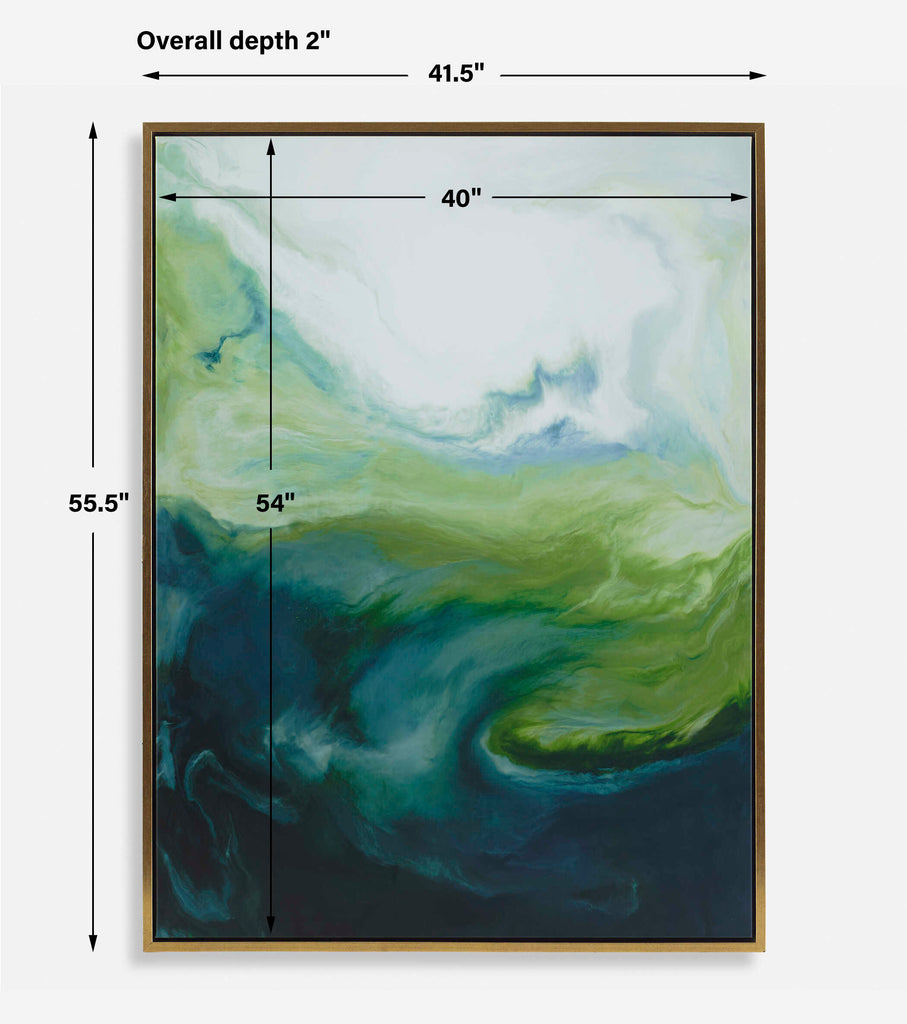 Pedro Calderon De La Barca Once Said, "Green Is The Prime Color Of The World And That From Which Its Loveliness Arises." This Stunning Canvas Blends The Timeless Elegance Of Marble With A Modern Gradient Effect In Lush Greens. Surrounded By A Solid Wood Gallery Frame In Gold Finish. Each Piece Is Proudly Handcrafted And Printed In The USA. Artwork By Corrie Lavelle.