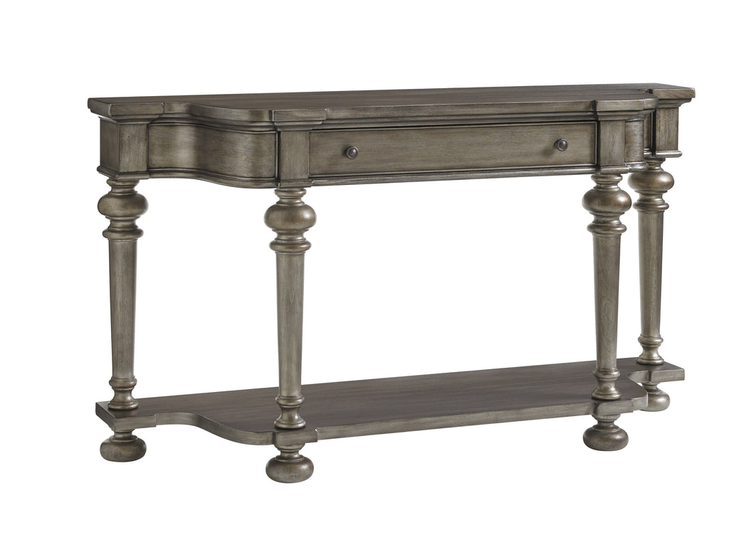PELICAN GRAY - Series 717 Casual transitional designs crafted in quartered Mahogany veneers and select hardwoods in a gently distressed silver-gray finish, with custom hardware in an antique pewter finish.