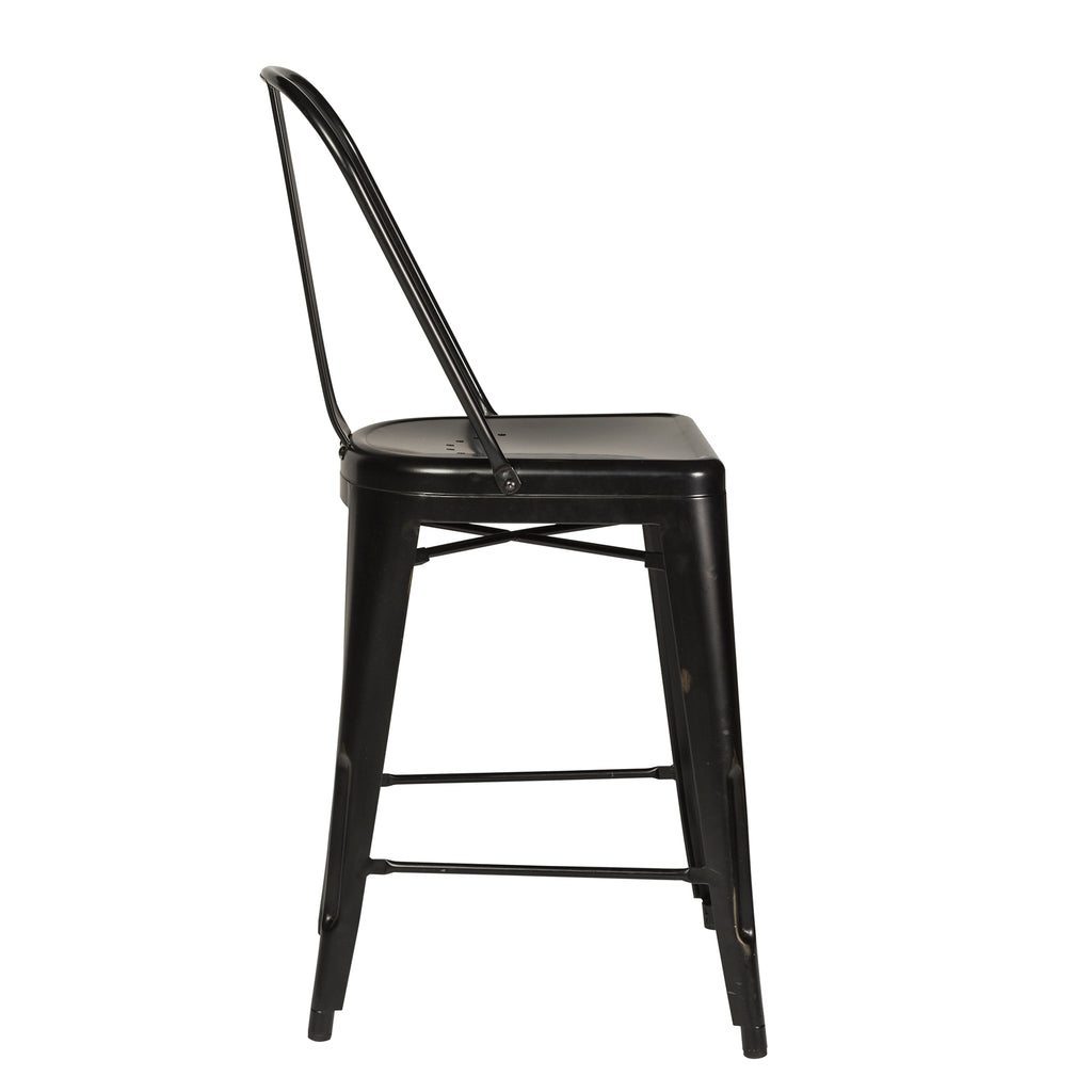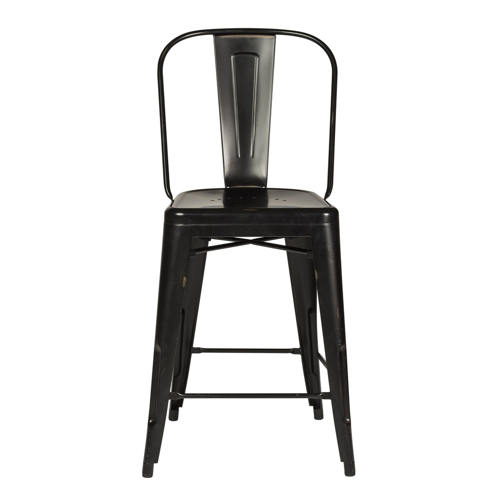 Indulge in classic vintage styling and industrial feel with the Vintage Series optional five-piece gathering table set. Crafted of pine veneer and metal, this set includes a pub table and four metal bow back counter height chairs. The pub table has a fixed round top in a wire brushed wood tone finish that is anchored by a distressed metal base with nail head accents. The distressed metal finishing on the pub table base and chairs offer a unique designer look.